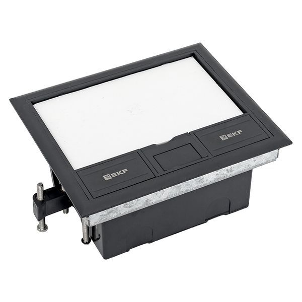 Лючок напольный C-Line 8 (с приборной рамкой) EKF. Предназначен для монтажа в фальшполы и бетонные полы при помощи напольной коробки cl-knl-8. Позволяет монтировать модульные ЭУИ (до 8 модулей). Весь необходимый крепеж в комплекте. Лючки и комплектующие к ним представляют собой напольную систему C–Line EKF, включающую в себя лючок напольный, коробку напольную, приборную рамку и ниверлирующий комплект (в зависимости от конкретной ситуации список комплектующих может изменяться). Все изделия приобретаются отдельно. В лючки C-line 8 устанавливаются только модульные электроустановочные изделия.