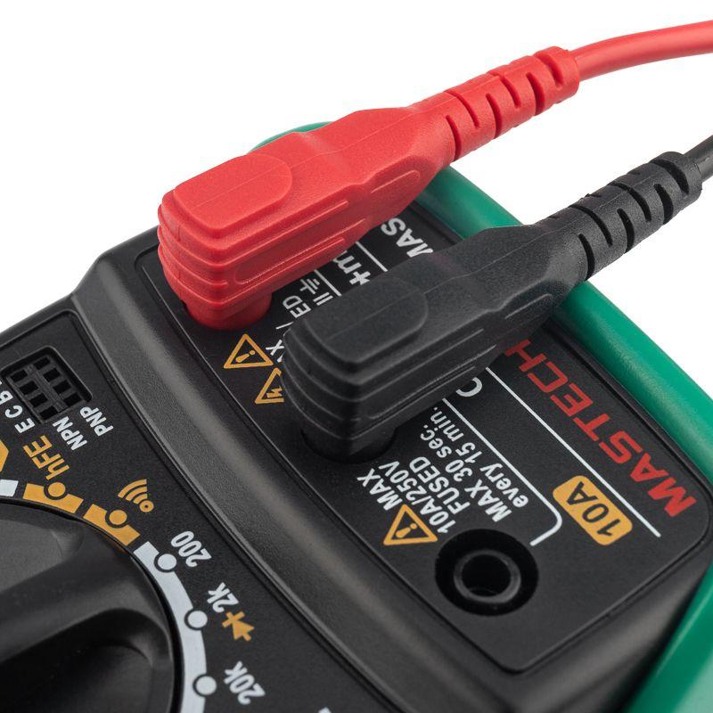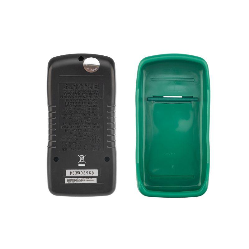 Портативный мультиметр MASTECH MAS838 – прибор, который измеряет постоянное и переменное напряжение, постоянный ток, сопротивление в цепи, температуру. С помощью данного устройства можно проводить тестирование диодов и прозвонку целостности цепи. Прибор оснащен функцией удержания результата измерений DATA HOLD: используется в случае проведения работ в труднодоступных местах. Поворотный регулятор для выбора измеряемых величин и их пределов усилен для исключения возможности случайного нажатия. Мультиметр укомплектован термопарой «К»-типа, измерительными щупами, батареей и руководством по эксплуатации. Прибор изготовлен из высококачественных материалов, калибровка и тестирование приборов произведены под контролем компании СДС. Характеристики: Постоянное напряжение: 200 mВ/2 В/20 м/200 В (±0.5% +3), 600 В (±0.8% +5) Переменное напряжение: 200 В/600 В (±1.2% +10) Постоянный ток: 20 мкА/200 мкА/2 мА/20 мА/200 мА (±1.0% +3), 10 A (±3.0% +10) Сопротивление: 200 Ом/2 КОм/20 КОм/200 КОм (±0,8% +2), 2 МОм (±1,0% +5) Температура: –20...+1000 °С (±2.0% +2) Тестирование диодов: да Прозвонка целостности цепи: да Импеданс: <50 Ом Рабочая температура: 0...+40 °С Размер: 138х69х31 мм Тип батареи: 9 В «Крона» Принадлежности: устройство, комплект измерительных щупов, батарея 9 В, термопара «К»-типа, инструкция и упаковка Преимущества: Режим удержания измерений DATA HOLD Индикация разряда батареи Ручной выбор предела измерений 4-разрядный дисплей Небольшой вес