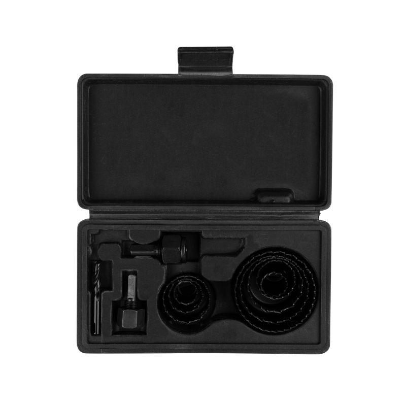 Набор коронок популярных диаметров предназначен для вырезания круглых отверстий в древесине, ДСП, ДВП, пластике. Позволяет сделать отверстия для установки розеток, выключателей, светильников, также будет полезен при установке труб. Набор отличается продуманной комплектацией: помимо коронок в него выходят держатель для коронок диаметром 19-28 мм и держатель с центрирующим сверлом для коронок диаметром 32-64 мм. В набор также входит шестигранный ключ, упрощающий установку сверла в державку. Предусмотрена упаковка в виде кейса, удобная для хранения коронок. Набор состоит из коронок диаметром 19-22-28-32-38-44-54-64 мм (8 шт.), шестигранного ключа (1 шт.), держателя для коронок диаметром 19-28 мм (1 шт.), держателя с центрирующим сверлом для коронок диаметром 32-64 мм (1 шт.). Применяется совместно с дрелью, шуруповертом или сверлильным станком.