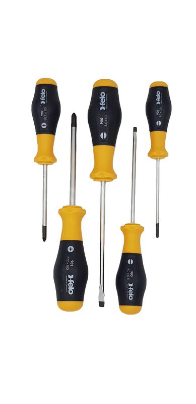 Набор отверток 900-ой серии предназначен для работ с различным крепежом SL и PZ. Эргономичный дизайн рукоятки и противоскользящий материал (Soft Grip) помогает обеспечить наибольшую передачу усилия. Специальный дизайн двухкопонентной рукоятки не позволяет инструменту скатываться с поверхности. Лезвия изготовлены из специальной хромомолибден-ванадиевой стали для достижения наилучшего результата при работе! Точная посадка в крепеж обеспечивается за счет черного наконечника (Black-Tip). Состав набора: SL: 3,0 x 80 / 4,0 x 100 / 5,5 x 125 PZ: PZ 1 x 80 / PZ 2 x 100