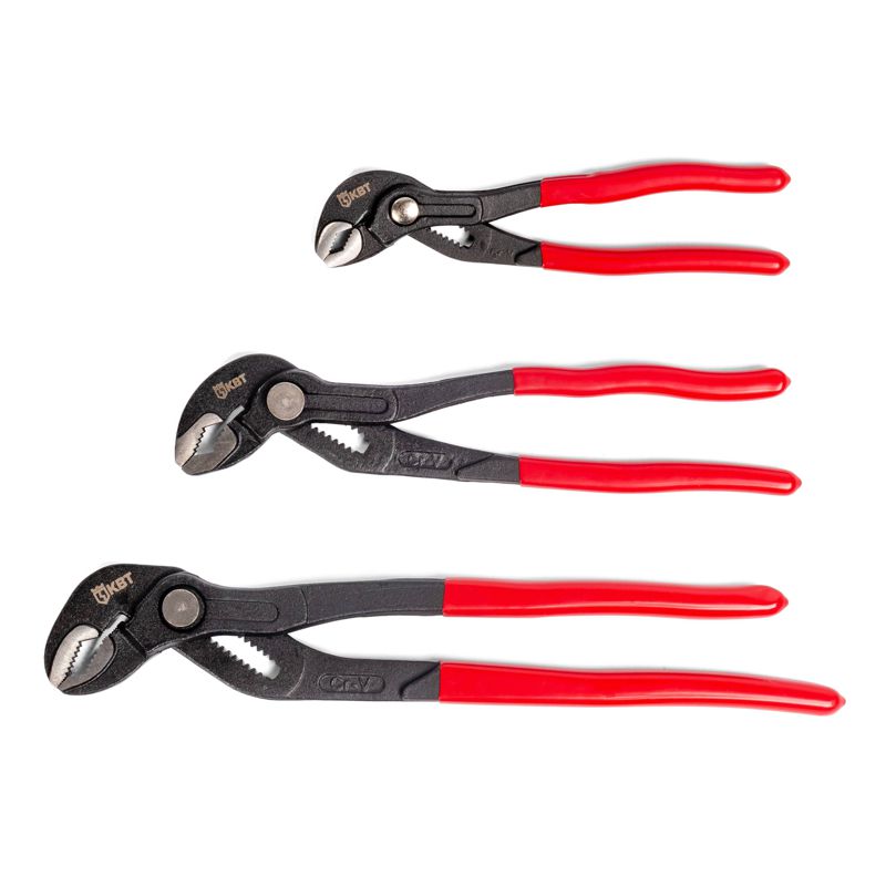 • Состав набора: • клещи переставные 180 мм • клещи переставные 250 мм • клещи переставные 300 мм • Предназначены для захвата плоских, круглых и многогранных деталей • Зубья повышенной твердости: HRC 52...58 • Регулировка раскрытия пружинной кнопкой • Материал: кованая хром-ванадиевая сталь • Обработка поверхности: воронение • Упаковка: сумка-сверток с отверстиями для подвешивания • Вес набора: 1160 г