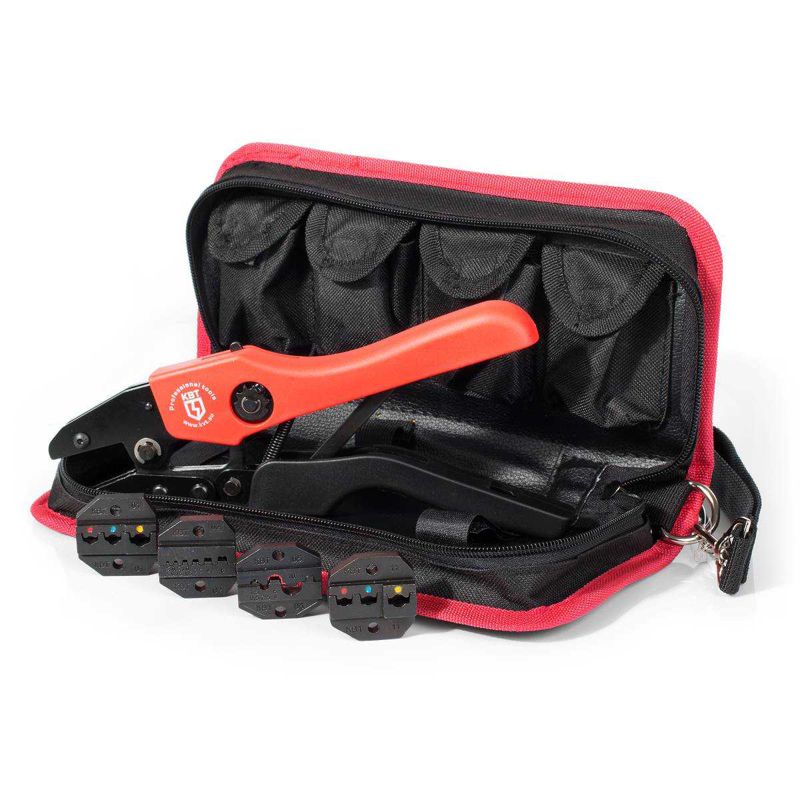 • В комплекте: • пресс-клещи СТК • матрица МПК-01 для изолированных наконечников • матрица МПК-11 для изолированных разъемов • матрица МПК-02 для втулочных наконечников • матрица МПК-05 для неизолированных наконечников • сумка для инструмента с отделениями под матрицы • Сумка имеет 4 кармана с возможностью размещения 8 матриц плюс одна матрица в инструменте • Совместимость: все матрицы серии МПК (КВТ) • Усиленная конструкция 9-дюймовых пресс-клещей • Храповой механизм, обеспечивающий блокировку обратного хода до завершения полного цикла опрессовки • Устройство разблокировки храпового механизма • Регулятор прижимного усилия матриц • Удобные эргономичные рукоятки • Прочная сумка с двумя карманами на лицевой стороне, кистевым ремнем и лямкой для крепления на пояс • Материал сумки: полиэстер 1680D Оксфорд