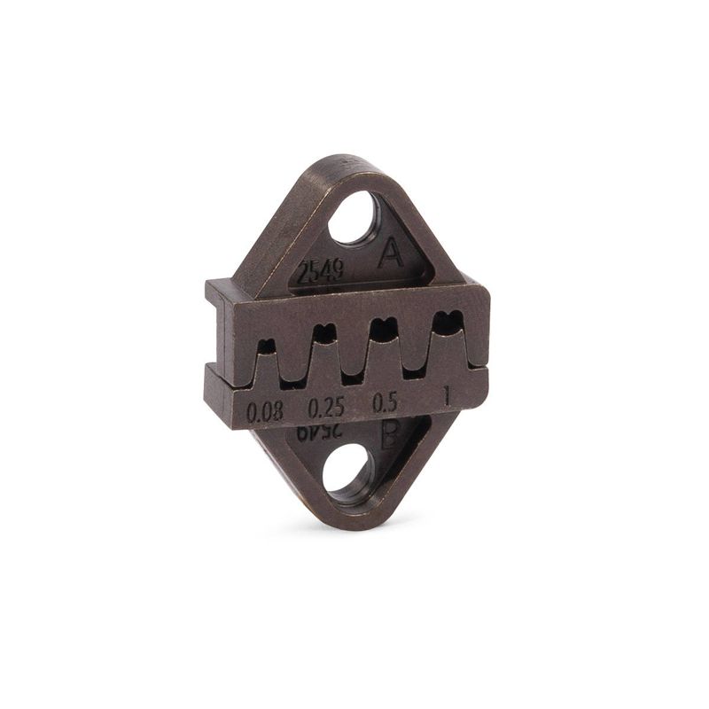• Состав набора: • пресс-клещи СТС • 8 сменных матриц • Универсальный инструмент с максимальным количеством сменных матриц для опрессовки широкого ряда неизолированных разъемов и наконечников (автоклемм), втулочных наконечников, изолированных наконечников и разъемов, неизолированных трубчатых наконечников и гильз • Легкий, компактный и эргономичный инструмент • Угол наклона головы: 23° • Матрица МПКм-01 (SN-0725): • опрессовка изолированных наконечников типа: НКИ, НКИ(н), ВНКИ, НВИ, НИК, НШКИ, НШПИ, ГСИ, ГСИ(н) • сечения: 0.25–2.5 мм2 • двухпозиционная матрица • профиль обжима: овальный двухконтурный • Матрица МПКм-02 (SN-06WF): • опрессовка втулочных наконечников типа: НШВИ, НШВ • сечения: 0.25 –6 мм2 • шестипозиционная матрица • профиль обжима: трапециевидный • Матрица МПКм-03 (SN-16WF): • опрессовка втулочных наконечников типа: НШВИ, НШВ • сечения: 6 –16 мм2 • трехпозиционная матрица • профиль обжима: трапециевидный • Матрица МПКм-04 (SN-02): • опрессовка неизолированных медных наконечников и гильз типа: ТМЛ, ТМЛс, ТМ, ГМЛ, ГМЛ(о) • сечения: 0.5-2.5 мм2 • трехпозиционная матрица • профиль обжима: клиновидный • Матрица МПКм-05 (SN-0325): • опрессовка неизолированных медных наконечников и гильз типа: ПМ, НШП, ГМЛ(о) • сечения: 0.5–2.5 мм2 • трехпозиционная матрица • профиль обжима: клиновидный • Матрица МПКм-06 (AV-248): • опрессовка наконечников (автоклемм) РП-М, РП-П, НК, ГС (2.8/4.8) • сечения: 0.25-1.5 мм2 • трехпозиционная матрица • профиль обжима: лепестковый двухконтурный • Матрица МПКм-07 (AV-63): • опрессовка неизолированных наконечников (автоклемм) РП-М, РП-П, НК, ГС (6.3) • сечения: 1.0-2.5 мм2 • двухпозиционная матрица • профиль обжима: лепестковый двухконтурный • Матрица МПКм-08 (SN-2549): • опрессовка коннекторов: Dupont 2.54, SH 1.0, JST 1.25, ZH 1.5, PH 2.0, XH 2.54, SM 2.54, KF 2510, CH 3.96 • сечения: 0.08-1.0 мм2 • четырехпозиционная матрица • профиль обжима: лепестковый двухконтурный • Пресс-клещи СТС несовместимы с матрицами МПК (КВТ) • Храповой механизм, обеспечивающий блокировку обратного хода до завершения полного цикла опрессовки • Устройство разблокировки храпового механизма • Регулятор прижимного усилия матриц • Двухкомпонентные эргономичные рукоятки с небольшим раскрытием • Обработка поверхности: воронение • Вес набора/инструмента: 760/380 г • Длина инструмента: 195 мм • Габаритные размеры сумки: 232х108х40 мм