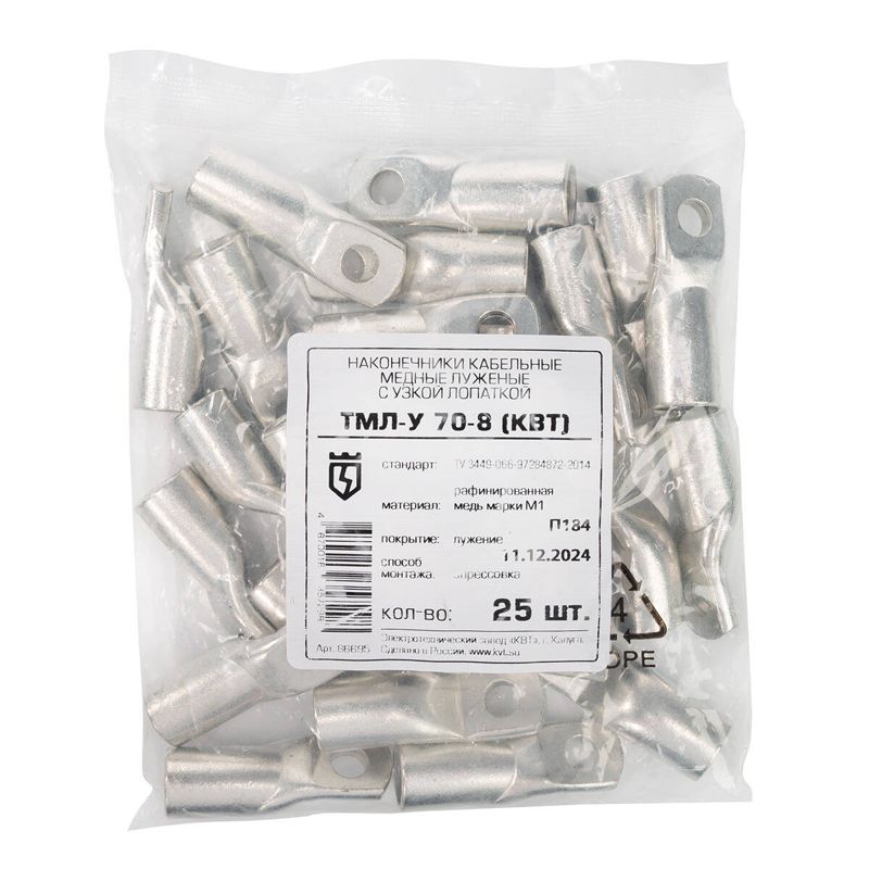 • Предназначены для оконцевания опрессовкой медных кабелей и проводов с последующим подключением к низковольтным автоматическим выключателям • Материал: рафинированная медь марки М1 • Рабочее напряжение: до 1 кВ • Покрытие: олово-висмутовое лужение (климатическое исполнение «Т2») • Параметры крепежной части наконечников: • ширина лопатки и диаметр контактного отверстия под винт рассчитаны для подключения к блочным автоматическим выключателям (МССВ) • Штампованная маркировка типоразмера и логотипа производителя на каждом наконечнике • Совместимость: блочные автоматические выключатели с номиналом от 100 до 630 А в литом корпусе (МССВ) импортных и отечественных производителей с контактными клеммами на основе винтовой фиксации