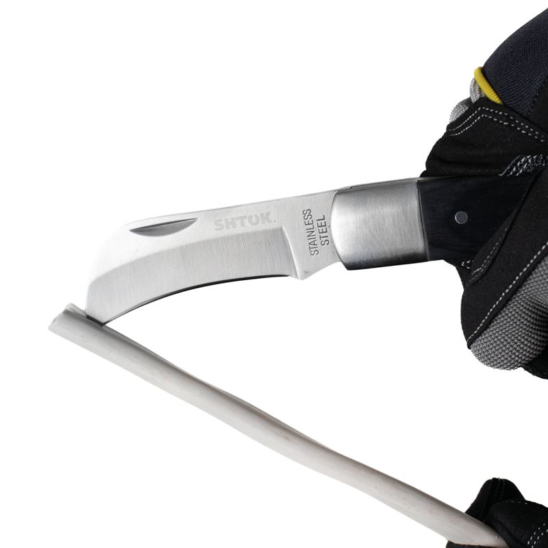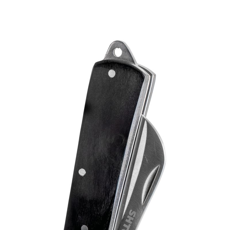 Большой складной нож для снятия изоляции предназначен для широкого спектра электромонтажных работ. Длина ножа в открытом состоянии, мм: 195 Длина ножа в сложенном состоянии, мм: 120 Длина лезвия, мм: 75 Толщина обуха, мм: 3 Материал лезвия: нержавеющая сталь Матовая финишная полировка Материал рукоятки: стабилизированная древесина Не предназначен для работ под действующим напряжением Острое лезвие