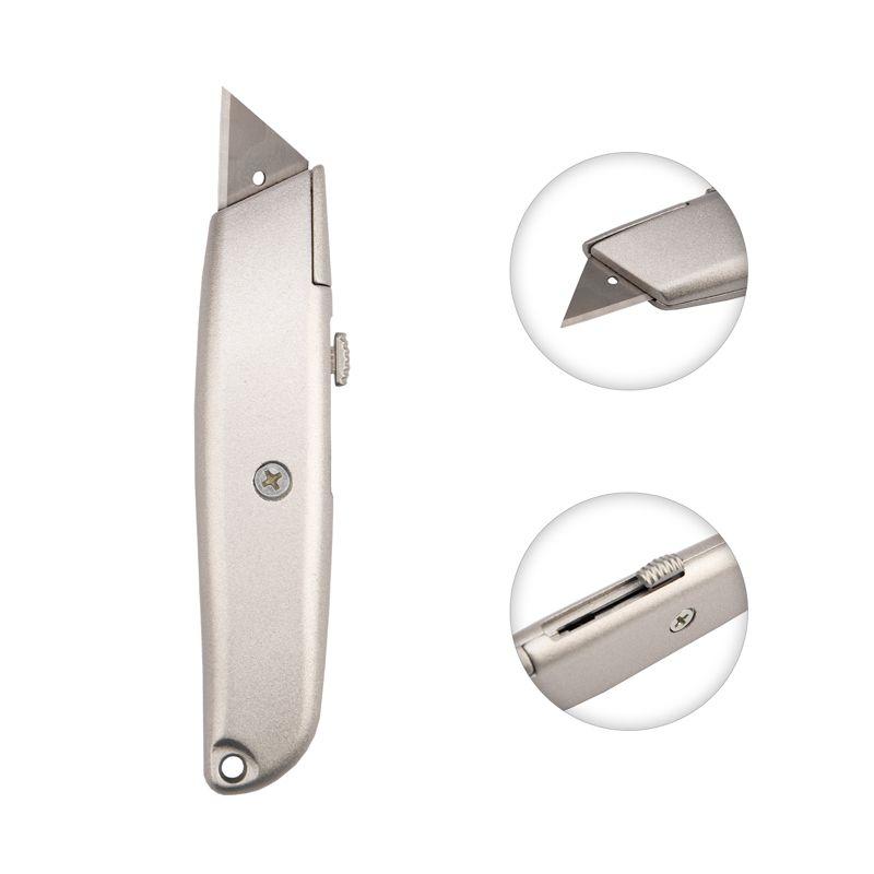 Нож с выдвижным трапециевидным лезвием REXANT — отличный помощник для резки различных материалов: пластика, линолеума, кровельных материалов, гипсокартонных и гипсолитовых плит, бумаги, картона. Корпус ножа выполнен из металла, что обеспечивает долговечное использование. Лезвие изготовлено из высококачественной инструментальной стали. Замена быстро и просто осуществляется вручную без использования дополнительных инструментов.