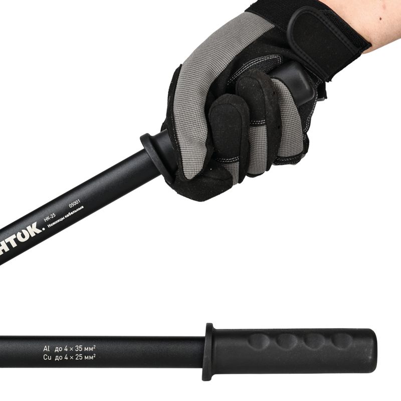 Кабельные ножницы SHTOK НК-25 05001 используются во время ремонтных работ по укладке кабеля. Обладают прочной конструкцией. Рукоятки оптимальной длины с резиновыми наконечниками, что предотвращает скольжение рук и обеспечивает более удобную работу оператора. Диаметр перерезаемого кабеля, мм: 25; Сечение перерезаемого Cu кабеля, мм2: 4х25; Сечение перерезаемого Al кабеля, мм2: 4х35;