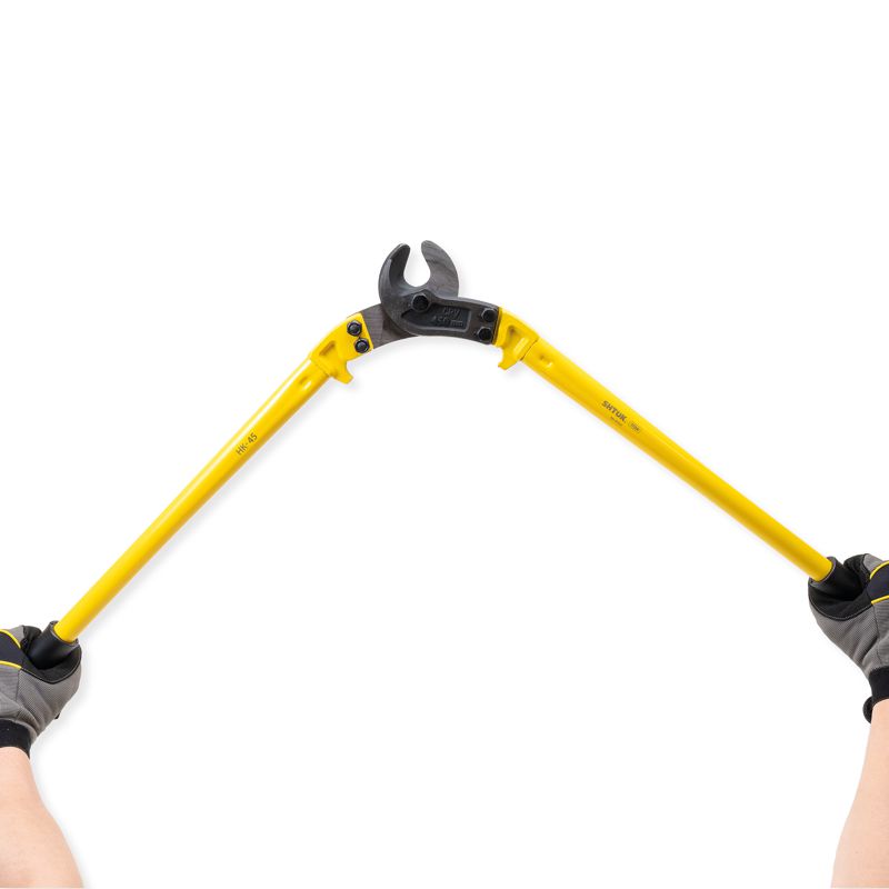 Ножницы кабельные НК- 45 предназначены для резки многожильных кабелей. Марка стали режущей части: CR-V Резка кабеля, Al, мм: O25 Резка кабеля, Cu, мм: O15 Твёрдость режущей части, HRC: 58-62 (!) Не предназначены для работ под действующим напряжением (!) Не предназначены для резки кабеля со стальной жилой или сердечником