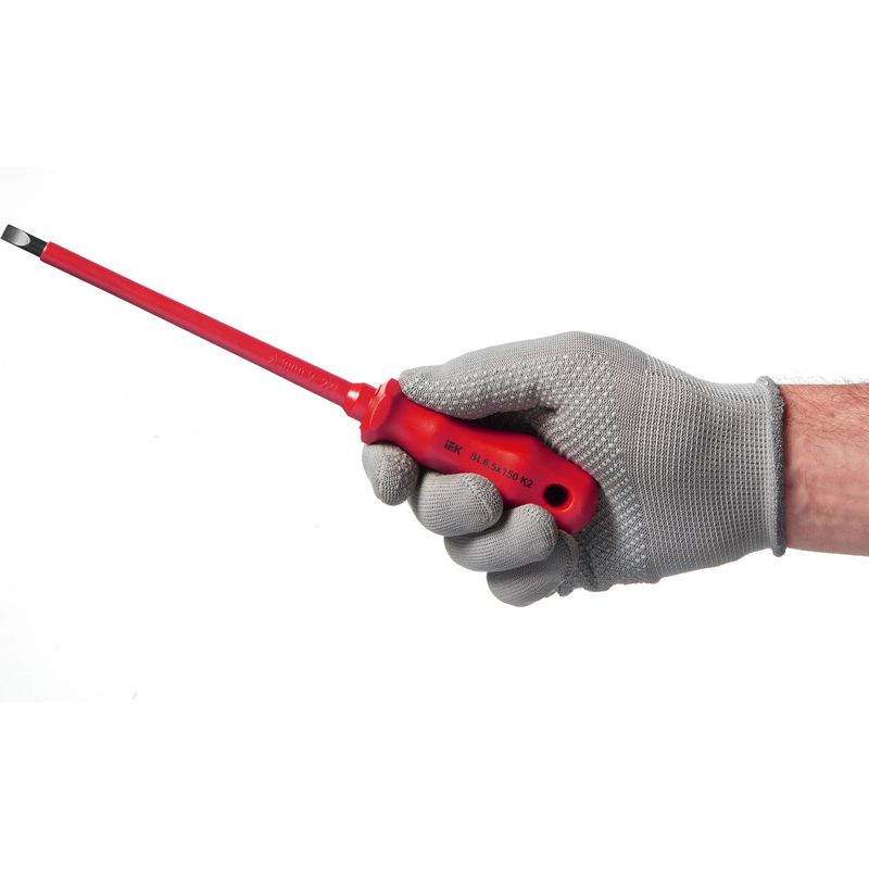 Диэлектрическая шлицевая отвертка К2 (Profi) предназначена для электромонтажных работ под напряжением до 1000В, изготовлена из хром-ванадиевой стали. Рукоятка выполнена из однокомпонентного полипропилена PP.