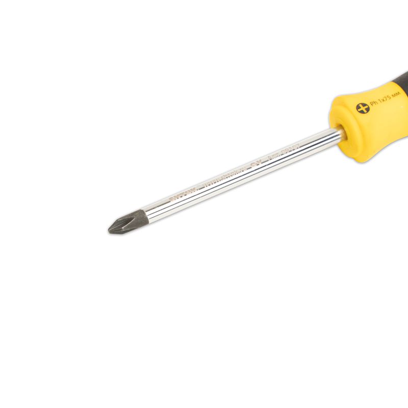 Крестовая отвертка SHTOK Ph1x75 мм 09107 предназначена для откручивания и закручивания саморезов с профилем Phillips. Надежный хват и точность работы обеспечивается за счет удобной двухкомпонентной рукоятки со вставками из термопластичного эластомера. Предусмотрен магнитный наконечник для удобства монтажа в приборах, расположенных вертикально. Особенности отвертки SHTOK 09107 Удобство работы За счет черненого магнитного наконечника возможен монтаж в приборах, расположенных вертикально. Надежность Двухкомпонентная рукоятка со вставками из термопластичного эластомера предотвращает образование мозолей и обеспечивает надежный хват и точность работы.