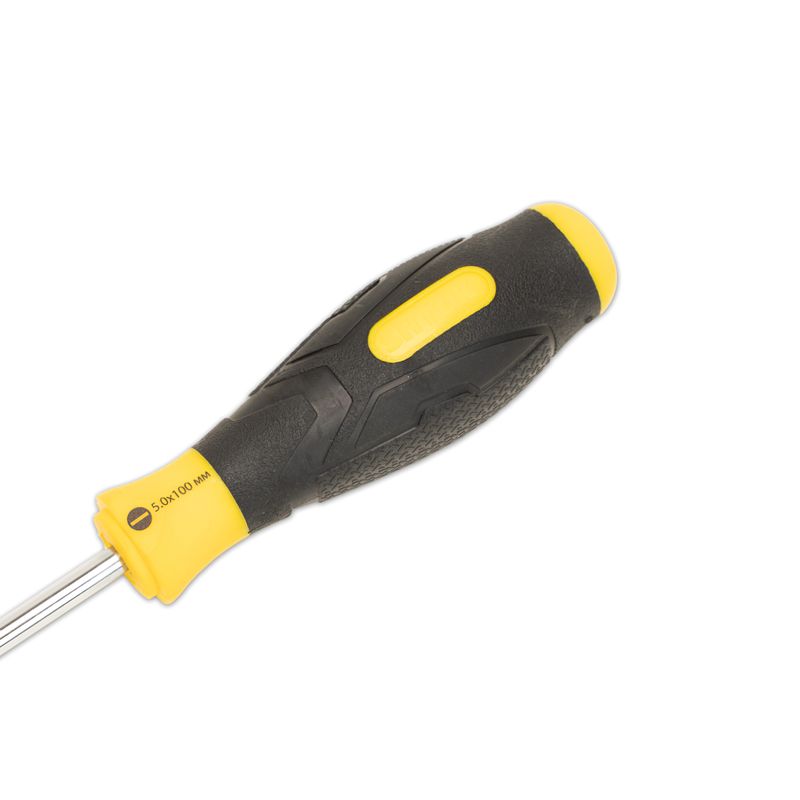 Шлицевая отвертка SHTOK 5.0x100 мм 09102 применяется при откручивании и закручивании крепежных элементов с рабочим профилем в виде прямого шлица. Рабочая часть, выполненная из термообработанной стали, обеспечивает прочность и долгий срок службы отвертки. Предусмотрен черненый магнитный наконечник. Особенности отвертки SHTOK 09102 Удобство работы За счет черненого магнитного наконечника возможен монтаж в приборах, расположенных вертикально. Долговечность За счет рабочей части, изготовленной из термообработанной стали, содержащей хром-молибден-ванадиевую лигатуру, обеспечивается прочность и долговечность шлицевой отвертки SHTOK 5.0x100 мм 09102.