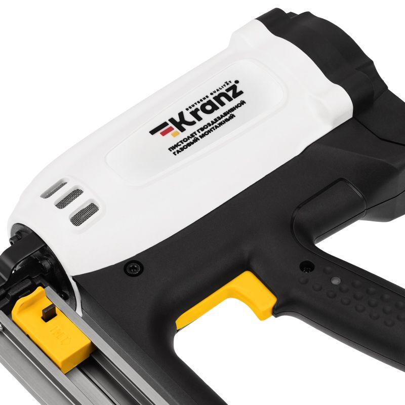 Гвоздезабивной газовый пистолет предназначен для быстрого монтажа крепежных изделий к бетонным поверхностям, кирпичной кладе и изделиям из металлопроката. Инструмент обладает силой удара в 95 Дж, что позволяет забивать гвозди длиной от 15 до 40 мм и диаметром от 2,7 до 3,05 мм. Емкость магазина – 30 гвоздей. Одного газового баллона хватает на 1100 гвоздей. Длина баллона без учета пластикового клапана 165 мм. При производстве применяются современные технологии закалки. Твердость сопел равна 52 HRC, что уменьшает износ и способствует стабильной, надежной и продолжительной работе инструмента. Твердость бойка – 57 HRC. Для увеличения ресурса инструмента в электродвигателе используют высококачественные японские компоненты. Цилиндры (камера сгорания) произведены из литого алюминия. Обработка поверхности цилиндров осуществляется на станках с ЧПУ, что способствует более высокой точности обработки всех деталей и сокращению брака. В комплекте поставляются 3 быстросъемные насадки для работы с различным крепежом.