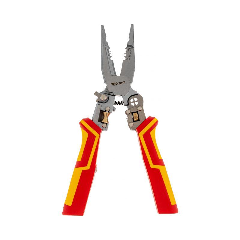 Многофункциональные диэлектрические плоскогубцы – это идеальный инструмент на все случаи жизни, включающий в себя: плоскогубцы, тонкогубцы, бокорезы, инструмент для зачистки кабеля, резак для проводов, инструмент для разделки и снятия оболочки, инструмент для скрутки кабеля, инструмент для обжима клемм, тестер для определения фазы-ноль. Плоскогубцы применяются для монтажных и кабельных работ, перекусывания проводов, а также для удаления изоляции. Используются для работы с оборудованием напряжением до 250 В – имеют удобную функцию определения фазного проводника контактным способом, предупреждают о высоком напряжении и защищают мастера от поражения электрическим током. Зоны захвата губок предназначены как для плоских, так и для круглых деталей, что делает инструмент многофункциональным. Плоскогубцы обладают отличной режущей способностью, подходят для резки/зачистки пластика, медных и мягких проводов, а также для обжима изолированных и неизолированных наконечников. Также подходят для зачистки кабеля от 1 до 3 мм2, для обжима кабеля от 1,5 до 6 мм2 и разделки оболочки кабеля от 1,5 до 10 мм2. Высокое качество металла позволит сохранить инструмент в отличном состоянии на долгие годы.