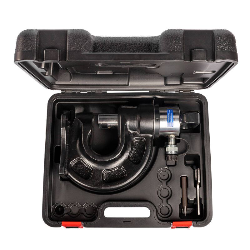 • В комплекте: • пресс гидравлический ШД-95 NEO • вороток, съемник и 2 имбусовых ключа для замены перфоформ • лазерный указатель и 9 батареек AG13 • ремкомплект уплотнительных колец • Совместим с перфоформами МПШО (КВТ) • Перфоформы для пресса ШД-95 NEO приобретаются отдельно из размерного ряда МПШО • Толщина пробиваемого материала: • медная/алюминиевая шина: до 10 мм • стальной лист: до 6 мм • Диаметры пробиваемых отверстий (мм): • круглые: 6.5/8.5/10.5/13.0/17.0/21.0 • овальные: 6.5х10/8.5х13/10.5х17/13х20/17х22 • Максимальное усилие: 20 т • Присоединительная резьба: K 3/8" «розетка» • Максимальное расстояние от края шины до центра отверстия: 70 мм • Пресс оборудован лазерным указателем для легкой и точной центровки шины при пробивке • Не требует предварительного высверливания центровочного отверстия • Возможность стационарного крепления пресса к рабочему столу • Вес инструмента: 16.60 кг • Упаковка: прочный пластиковый кейс • Габариты упаковки: 430х160x365 мм • Совместимость: любые гидравлические насосы «КВТ» с объемом рабочей жидкости не менее 0.60 л