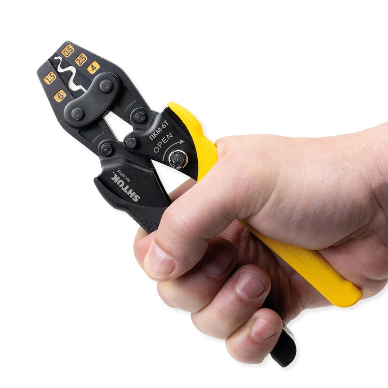 Пресс-клещи ПКМ-6Т предназначены для опрессовки неизолированных наконечников и гильз любого стандарта Тип наконечников и гильз: неизолированные Профиль обжима: точка Диапазон сечений, мм2: 0.5-6.0 Длина, мм: 180 Вес, кг: 0.250 (!) Не предназначены для работ под действующим напряжением
