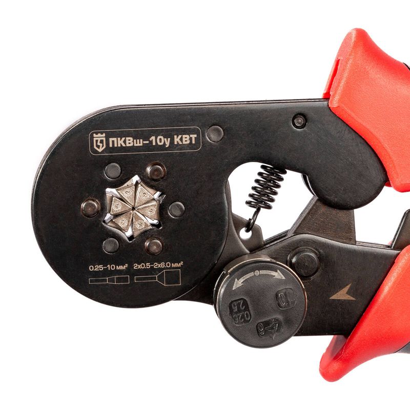 • Диапазон сечений втулочных наконечников: • НШВИ, НШВ: 0.25–10 мм2 • НШВИ(2): 2х0.5–2х6.0 мм2 • Универсальный инструмент для опрессовки практически всего ряда втулочных наконечников • Одна саморегулирующаяся матрица на все типоразмеры диапазона • Ширина обжимной матрицы: 13 мм • Инструмент перекрывает диапазон из 17 размеров втулочных наконечников • Шестигранный профиль обжима с рифлением • Усовершенствованный храповой механизм, гарантирующий полный цикл опрессовки • Уникальный трехпозиционный регулятор прижимного усилия матриц: 0.25-2.5 мм2/4-6 мм2/10 мм2 • Двухкомпонентные эргономичные рукоятки • Вес: 420 г • Длина: 170 мм