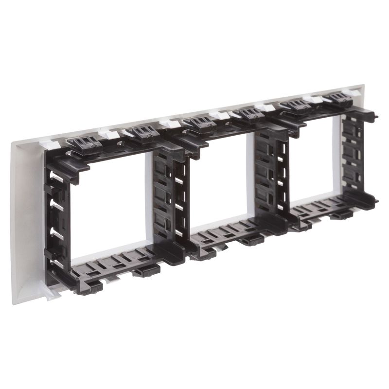 Рамка-суппорт на 6 модулей в комплекте с каркасом для монтажа в систему кабельных коробов "In-liner Front" и систему организации рабочих мест "Sotto" (алюминиевые кабель-каналы, колонны, башенки и лючки). Назначение: для монтажа в кабель-каналы, башенки, лючки, колонны. Характеристики: материал – АБС-пластик, устойчив к воздействию УФ-излучения; устанавливается на каркасы 4402812 (каркасы 4402812 идут в комплекте с рамками-суппортами). Цвет: серебристый металлик