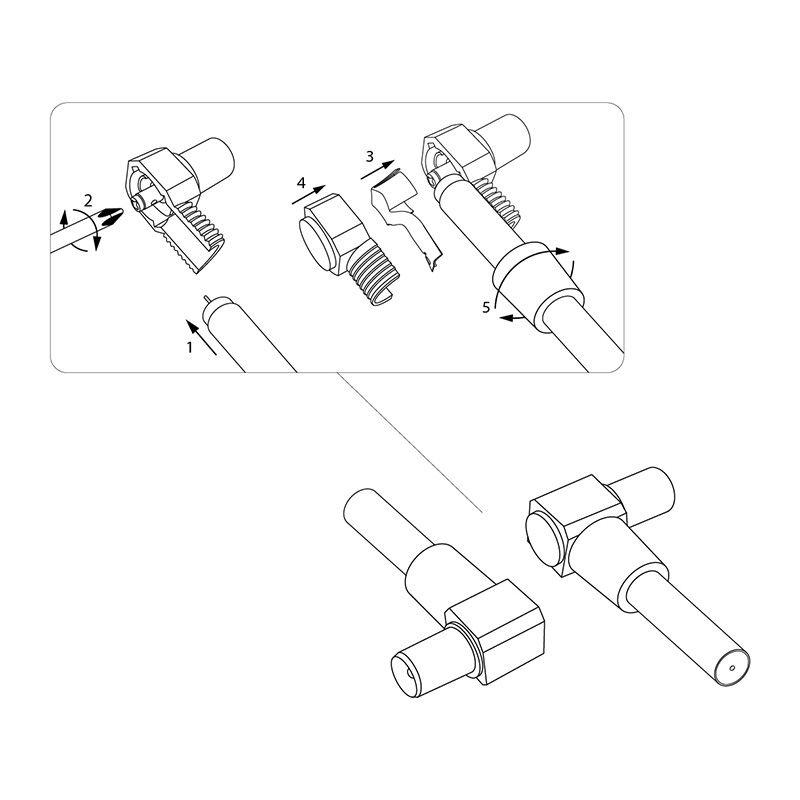 TV-разъем штекер REXANT предназначен для подключения эфирного, спутникового и кабельного телевидения с помощью радиочастотного кабеля. Разъем монтируется на телевизионный кабель и передает идущий сигнал на ТВ устройства. Установка провода в разъеме производится с помощью винтового зажима, что значительно экономит время на монтаж. Корпус разъема изготовлен из белой пластмассы, а контакты из никелированной меди. Для удобства подключения в условиях ограниченного пространства штекер имеет угловую форму.