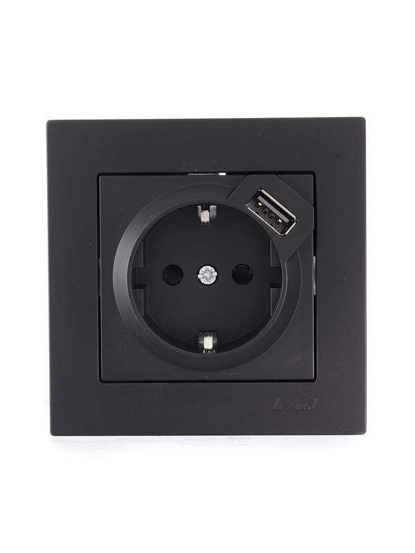 Розетка 1-м СП Vesna с заземл. с заряд. устройством USB механизм черн. бархат LEZARD 742-4288-181