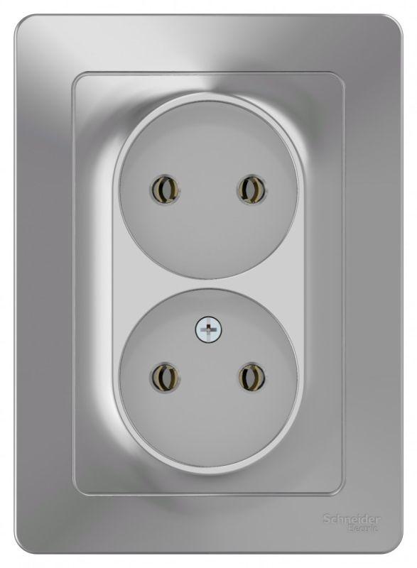 Розетка Systeme Electric (ранее Schneider Electric) BLANCA (алюминий, скрытой установки) двухместная, без заземления и шторок предназначена для сетей до 250В, на ток до 16А. Двухместная розетка позволяет подключить два устройства в одном месте. Она изготовлена из ABS-пластика, проста в установке и удобна в применении.
