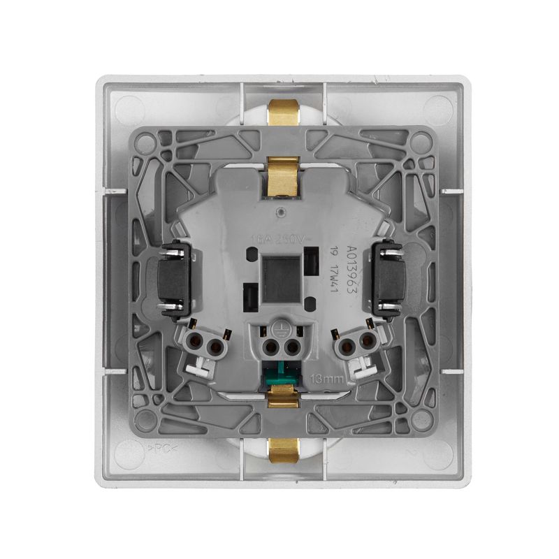 Розетка двойная с заземлением с защитными шторками Inspiria в сборе с рамкой для скрытого монтажа, цвет "Алюминий". Максимальный ток 16А, напряжение 250В~, максимальная мощность 3680Вт, безвинтовые зажимы. Применяется для электропитания в зданиях с проводкой с заземлением (с защитным проводником). Позволяет компактно разместить две розетки в одном установочном месте.