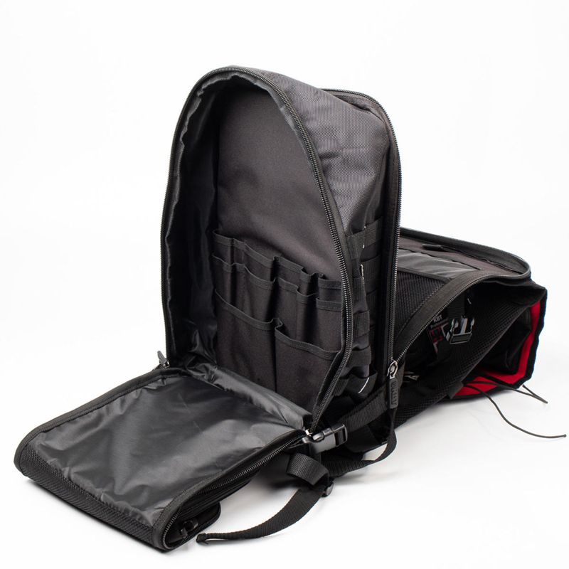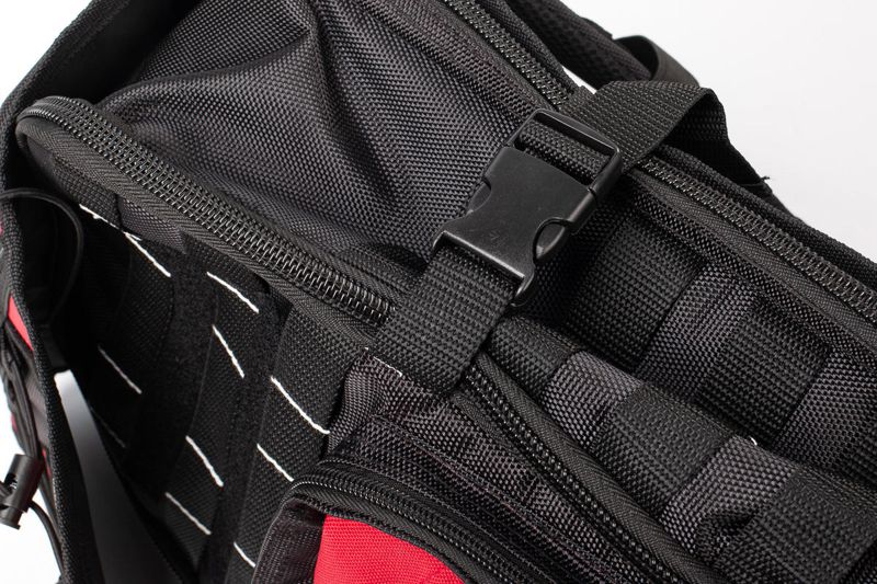 • Материал: влагозащитный полиэстер 1680D Оксфорд WR PVC (610 г/м2) • Лицевая часть ткани покрыта пропиткой WR (water resistence), изнаночная часть PVC (поливинилхлоридом), что обеспечивает водонепроницаемость и водоотталкивающие свойства • Конструкция: • переднее и заднее внутренние отделенияс отдельными молниями • переднее отделение с 10 карманами • заднее отделение с большим широким плоским карманом, 2 карманами из капроновой сетки и вшитым нейлоновым карманом на молнии с 3 крепежными элементами из резиновой ленты и 2 кармашками на липучках • 2 внешних фронтальных каскадных кармана на молнии • 15 крепежных элементов из светоотражающей ленты и 15 крепежных элементов из капроновой ленты на фронтальной части рюкзака • верхний клапан рюкзака оборудован 2 карманами на молнии и 6 крепежными элементами из капроновой ленты • в одном из карманов на клапане рюкзака вшит внутренний нейлоновый карман и 3 крепежных элемента из резиновой ленты • Широкие мягкие регулирующиеся лямки • Регулируемый поясной ремень и ручка для переноски • Защелки-фиксаторы для изменения объема рюкзака • Светоотражающие элементы на внешнем фронтальном кармане рюкзака • Мягкие анатомические вставки на спинке рюкзака • Прочные усиленные молнии с крупными звеньями • Рюкзак выдерживает вес до 10 кг • Объем рюкзака: 29 л • Вес: 1.65 кг • Габариты (ВхДхГ, мм): 450*300*220