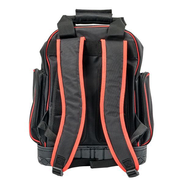 Рюкзак монтажника С-07 используется для хранения и переноски инструмента Особенности: 1. Выполнен из ткани 1680D Оксфорд, состав 100% полиэстер. 2. Мягкие анатомические вставки на спинке и лямках рюкзака для комфорта. 3. Резиновое дно для защиты рюкзака от попадания масла и влаги. 4. Две ручки для переноски вместо одной – удобно носить, не бьется об ноги. 5. Светоотражающие элементы на внешней стороне рюкзака для безопасности. 6. Отдельный карман для мультиметра – измерительный инструмент хранится отдельно. 7. Усиленная молния с прочными звеньями – гарантия долгой службы. 8. Узловые места имеют дополнительную прострочку – ручки не вырвет от веса. 9. Просторное внутреннее пространство с карманами для инструментов – при переноске не бьется о спину. 10. Усиленная ручка для переноски, способная выдержать большой вес инструмента, с тканевой застежкой, уменьшающей давление на руку (до 20 кг).