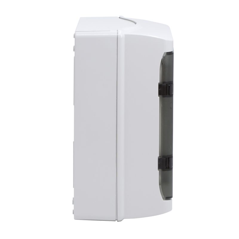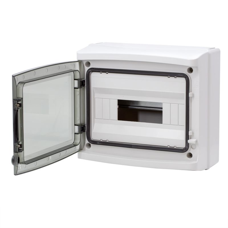 Настенный модульный щиток с прозрачной затемненной дверцей. Предназначен для монтажа в жилых и административных помещениях для установки автоматических выключателей любых производителей: таймеров, устройств защитного отключения и управления освещением и т.д. В комплект поставки входят: клеммные блоки 2 x (2x16mm2 + 12x10mm2), ручка на дверце, оцинкованная DIN-рейка, заглушки для пустых модулей, заглушки на пазы для крепления к стене, сборочные винты. Степень пыле- и влагозащиты IP 65. Ударопрочность корпуса IK09. Количество модулей - 12. Параметры щитка: ширина - 290 мм, высота - 260 мм, глубина - 133 мм. Материал - термостойкий пластик. Цвет - серый..