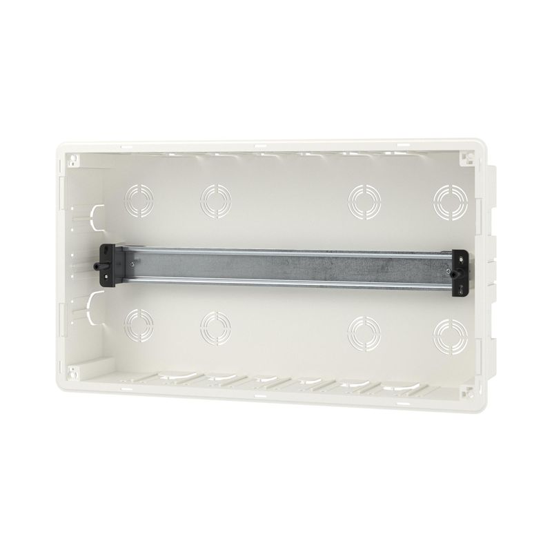 Встраиваемый щиток «Фрейм» (FRAME) предназначен для скрытого монтажа в бетонные\кирпичные стены. Применяется для установки модульных устройств. Съёмная рама с DIN-рейками позволяет сначала смонтировать и подключить оборудование и затем установить его в основание щитка в стену. Установка стандартных латунных шин возможна по всем стенкам корпуса и на боковую сторону съёмной рамы щитка. Единый корпус шинодержателя можно разделить на сегменты и использовать отдельно. Симметричный корпус щитка. Количество модулей- 18. Цвет корпуса белый, цвет двери- тонированная, ширина- 416,4 мм, высота- 242,4 мм, глубина- 101 мм. Материал- термостойкий и ударопрочный пластик. В комплекте DIN-рейка из гальванической оцинкованной стали, 2 шины PEN на 8 и 10 отверстий