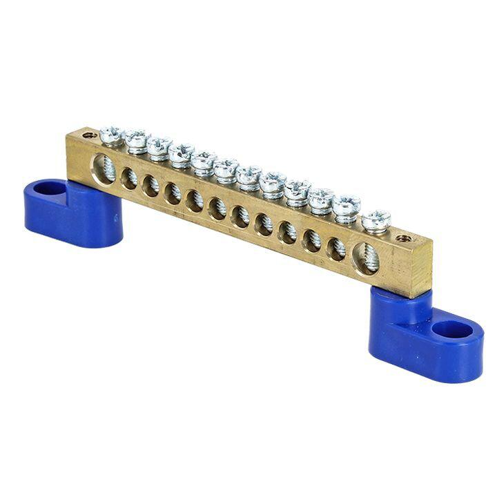 Шина нулевая N 6х9 12 отвер. латунь 2 син. угловых изолятора PROxima EKF sn0-63-12-2