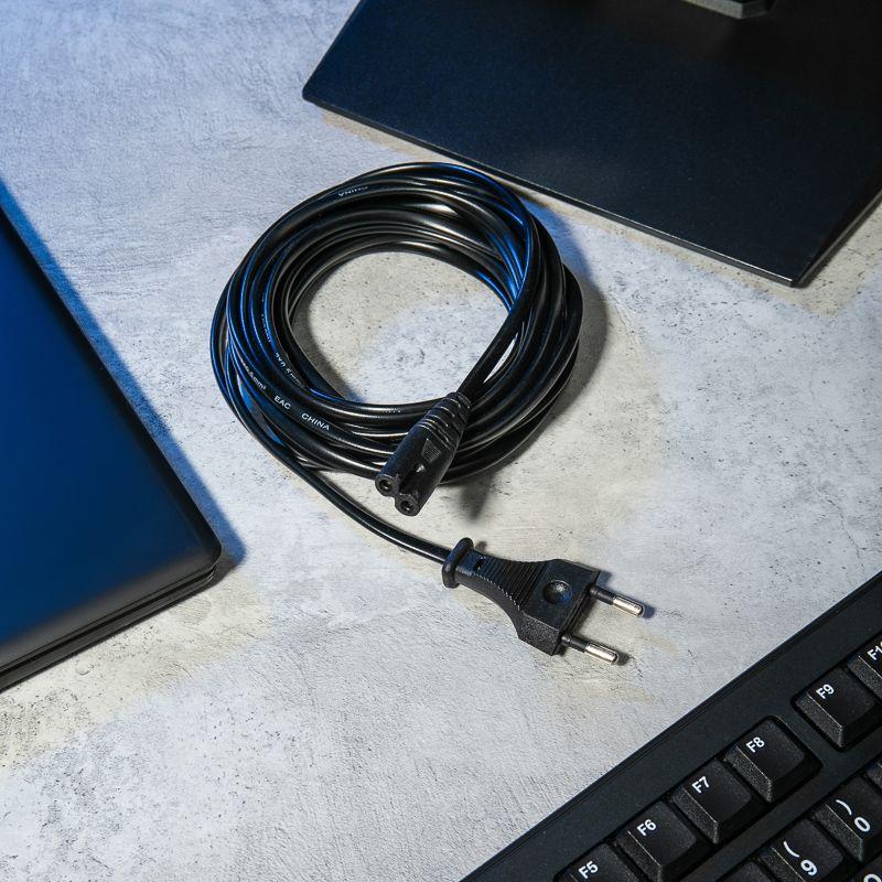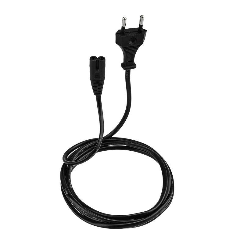 Шнур сетевой СЕЕ 7/16 - разъем IEC 320 C7, 2x0.5 мм2 1.8 м REXANT предназначен для подключения к сети переменного тока (AC) с напряжением 220 B аудио- и видеоаппаратуры, источников питания ноутбуков, игровых консолей и других приборов, имеющих штыревой сетевой разъем типа С8 (известен из-за его формы как «восьмерка»). Данный сетевой шнур (IEC cord) оснащен с одной стороны литой неразборной вилкой СЕЕ 7/16, с другой — литым гнездовым неполяризованным разъемом типа IEC 320 C7 и двухжильным проводом с сечением проводника 0.5 мм2. Основные характеристики: Тип вилки: СЕЕ 7/16 Тип разъема: IEC 320 C7 Максимальная сила тока: 3 А Изоляция жил и общая оболочка изготовлена из ПВХ Длина провода: 1.8 м Шнур имеет многопроволочные жилы, заключенные в эластичную двойную изоляцию из ПВХ, что делает его максимально гибким и увеличивает срок эксплуатации изделия.