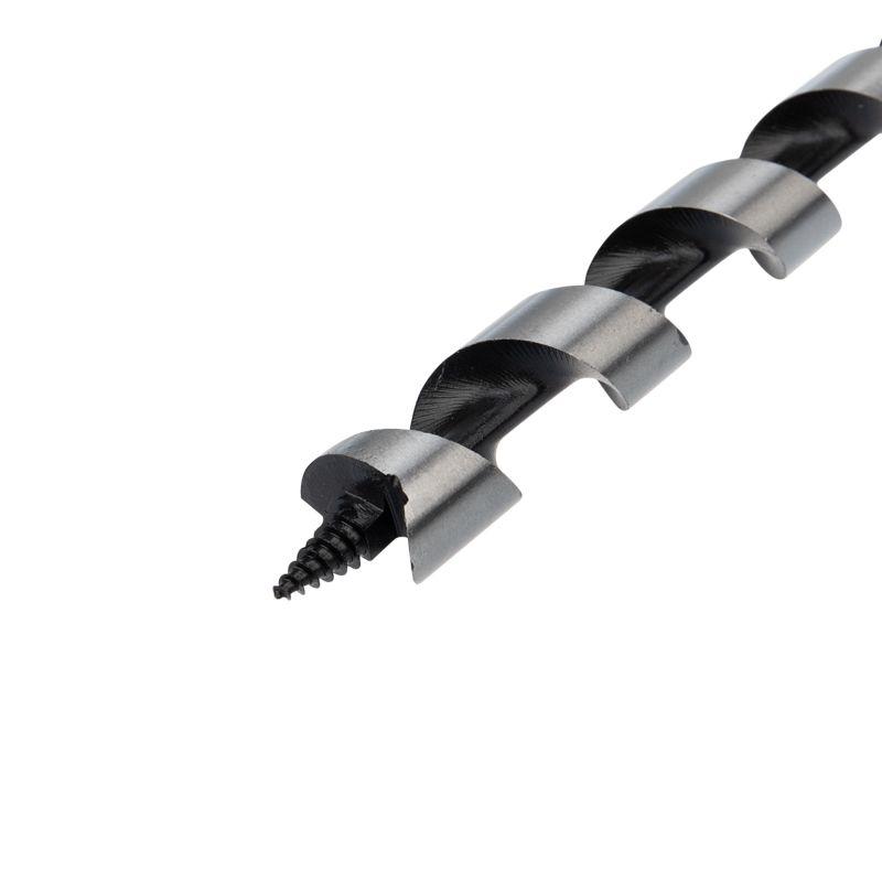 Винтовое сверло предназначено для сверления отверстий под нагели, дюбели. Используется при выполнении строительных, ремонтных и столярных работ. Сверло выполнено из закаленной инструментальной стали, что повышает износостойкость и долговечность инструмента. Центрирующее острие на конце рабочей части позволяет удобно засверливаться в материал и уменьшает осевую нагрузку, шнековая спираль Левиса обработана до зеркального блеска, из-за чего отверстия получаются гладкими, а стружка отводится более эффективно. Хвостовая часть, выполненная в виде шестигранника, надежно фиксирует сверло в патроне инструмента. Устанавливается на дрель или шуруповерт с высоким крутящим моментом.
