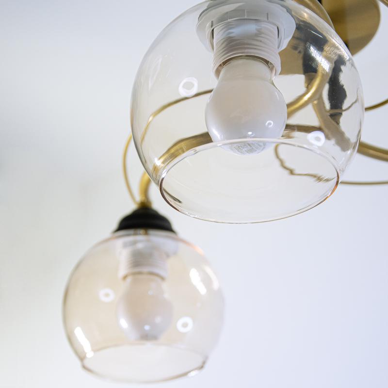 Люстра отлично подойдет для установки на низкий потолок комнаты, оформленной в современном стиле. Потолочная люстра с плафонами из стекла осветит помещение площадью 15 кв.м. Производитель рекомендует использовать для устройства лампы накаливания мощностью 60 W, а также светодиодные и энергосберегающие лампы. Узел крепления светильника на планку позволяет легко монтировать его на потолок, даже в случае устройства натяжного потолка. Модель произведена с использованием материалов: стекло и металл. Светильник дает максимум света, плафоны изготовлены из стекла, а это экологичный и долговечный материал. Плафоны легко моются и сохраняют свой безупречный внешний вид на протяжении всего срока эксплуатации.