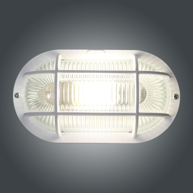 Рассеватель из стекла прижимным кольцом из пластика надежно прикреплен к корпусу светильника, обеспечивая пылевлагозащищенность светильника IP44. Рассеватель защищен от внешних случайных воздействий решеткой. Керамический патрон Е27, позволяет в качестве источника света использовать светодиодную лампу или лампу накаливания мощностью до 60вт.