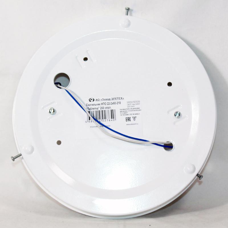 Настенно-потолочный светильник серии Таблетка предназначен для освещения жилых и общественных помещений, для медицинских и образовательных учреждений, для бытовых и вспомогательных пространств. Рассеиватель из молочного выдувного стекла мягко распределяет свет от лампы, делает комфортным пребывание человека в помещении. Производитель рекомендует использовать лампу накаливания с цоколем E27, мощностью 60 вт либо светодиодную лампу. Рекомендуемая площадь освещения до 7 м2.