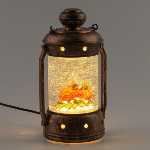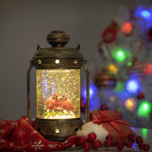 Новогодний светодиодный светильник ЭРА ENGDS-12 "Красный кардинал" высотой 18 см (арт. Б0051944) создаст у Вас дома праздничную атмосферу! Светильник-фонарик выполнен из ПВХ и окрашен под медь, внутри стекла расположены блестки, создающие эффект падающего снега. Внутри фонаря находятся фигурки двух красных кардиналов, они подсвечиваются 1 светодиодной лампочкой сверху. Декоративный светильник работает от 3 батареек АА, степень защиты IP20 (рекомендуется использовать в помещениях), автоматическое отключение через 6 часов. Он станет прекрасным украшением кухни, гостиной, а еще его можно использовать в спальне как ночник. Настольный винтажный фонарь - это необычный подарок на Новый год или Рождество, который понравится взрослым и детям. Новогодний декор для дома всегда поднимает настроение!