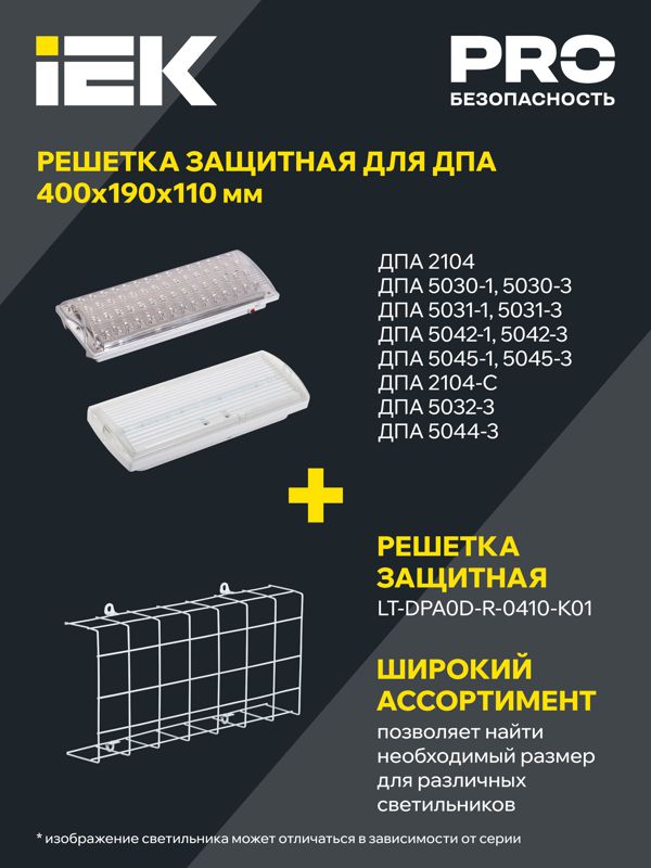 Светильники аварийные серии ДПА 5042 используются для обозначения эвакуационных выходов в помещениях с высоким уровнем содержания влаги и пыли (IP65), а также могут использоваться для указания направления эвакуации (пиктограммы в комплект поставки не входят). Аварийная работа светильников осуществляется от встроенного (незаменяемого) аккумулятора. Светильники имеют универсальное подключение (постоянного и непостоянного действия - зависит от схемы). Дальность распознавания 16 м, потребляемая мощность при заряде - 5 Вт. Соответствуют требованиям ГОСТ Р МЭК 60598-2-22 по аварийному освещению.