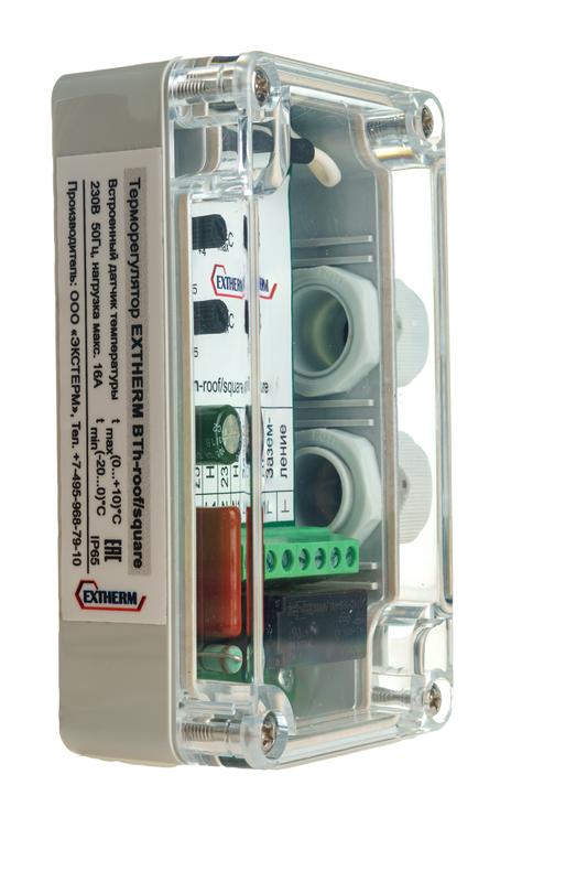 Внешний терморегулятор EXTHERM Th-roof-box предназначен для обогрева крыш, водостоков, площадок, ступеней со встроенным датчиком температуры. Монтаж на стену. Преимущества: • Независимое реле «сухой контакт» NO • Индикация рабочего состояния • Индикация нагрева • Индикация обрыва датчика • Механическая настройка