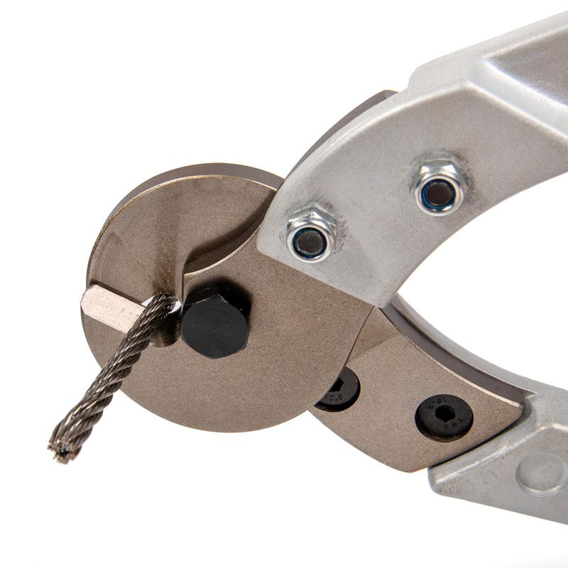 • Диапазон резки: • стальные тросы ? до 10 мм • прутки из низкоуглеродистой стали ? до 6 мм • Материал лезвий: высококачественная хром-молибденовая инструментальная сталь марки DC53 (аналог SKD11, Japan) • Твердость лезвий HRC 58...62 • Специальная форма и заточка лезвий • Легкие литые рукоятки из прочного алюминиевого сплава • Стопорные упоры на рукоятках • Надежные и долговечные модели • Вес: 1.65 кг • Длина: 590 мм