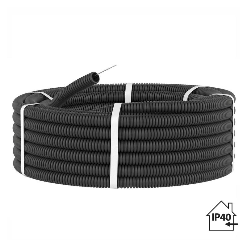 Труба гофрированная ПНД d16мм с протяжкой черн. (уп.75м) TOKOV ELECTRIC TKE-PND16-BL-75
