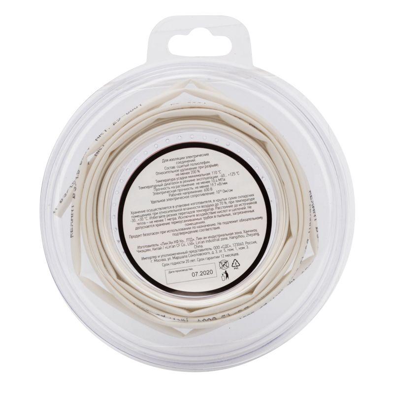 Трубка термоусадочная ТУТ нг 3.0/1.5 бел. ролик 2.44м Rexant 29-0001