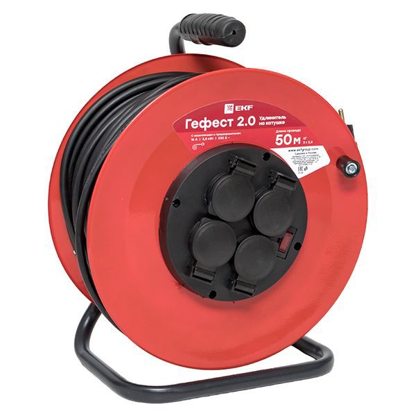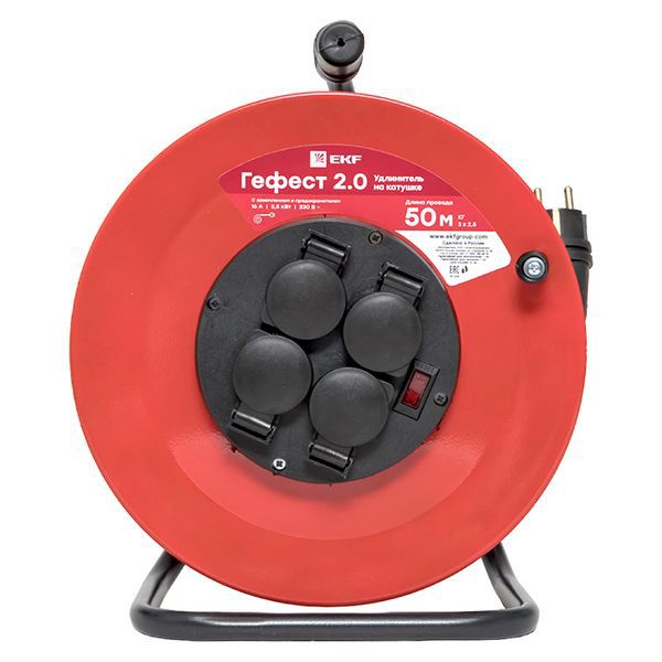 Удлинитель на катушке 4х50м с заземл. 16А IP44 Гефест 2.0 3.5кВт КГ 3х2.5 с предохранителем PROxima EKF UKG02-16-R325-4-50-IP44