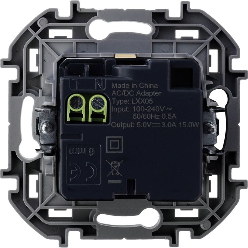 Зарядное устройство Inspiria для скрытого монтажа , тип А-тип С, цвет "Слоновая кость". Напряжение ~240В/=5В, максимальный зарядный ток 3000 мА. Применяется для непосредственной зарядки одного или двух мобильных устройств.