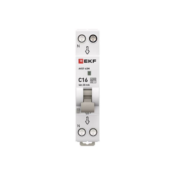 Автоматический выключатель дифференциального тока АВДТ-63 EKF PROxima представляет аппарат, сочетающий функции автоматического выключателя с электромеханическим или электронным УЗО. При обнаружении автоматическим выключателем в защищаемом участке сети тока утечки (повреждения) на землю или сверхтока (тока перегрузки иликороткого замыкания) происходит срабатывание устройства, приводящее к отключению защищаемой сети. Возможна коммутация алюминиевым и медным проводником.Автоматический выключатель дифференциального тока малогабаритный АВДТ-63М EKF PROxima представляет аппарат, сочетающий функции автоматического выключателя с электронным УЗО типа АС в компактном корпусе шириной один модуль. При обнаружении автоматическим выключателем на защищаемом участке сети тока утечки (повреждения) на землю или сверхтока (тока перегрузки или короткого замыкания) происходит срабатывание устройства, приводящее к отключению защищаемой сети. Особое отличие дифференциальных автоматических выключателей EKF с электронным УЗО – в наличии блока защиты от перенапряжения. Возможна коммутация алюминиевым и медным проводом.