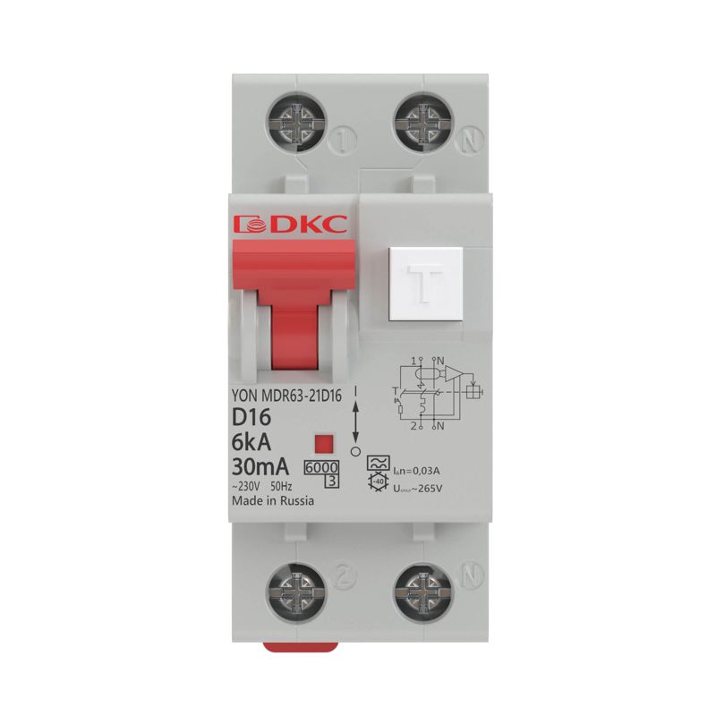 Двухполюсный автоматический выключатель дифференциального тока номиналом 20A, током утечки 10mA и кривой отключения C. Предназначен для защиты человека от поражения электрическим током и от подаров, возникших всдетствие токов утечки. А также для защиты электрических сетей от сверхтоков и токов короткого замыкания.