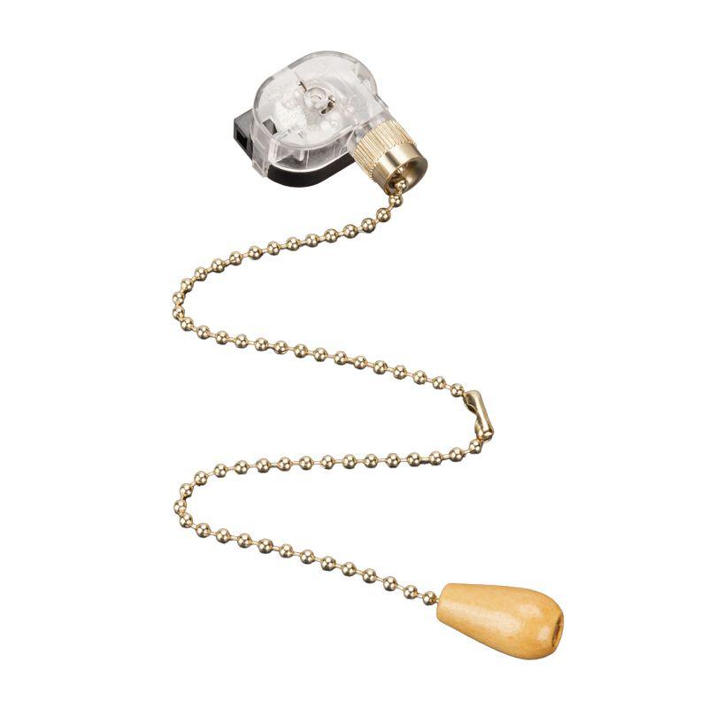Выключатель для настенного светильника предназначен для замены вышедшего из строя выключателя на осветительном приборе. Используется для удобного управления освещением. Хромированная цепочка устойчива к коррозии и сохраняет эстетичный вид долгое время, а длина 27 см обеспечивает удобный доступ к светильникам, которые расположены высоко. Деревянный наконечник позволяет быстрее найти выключатель, что особенно упрощает его использование в темноте. Предназначен для использования только в жилых помещениях.
