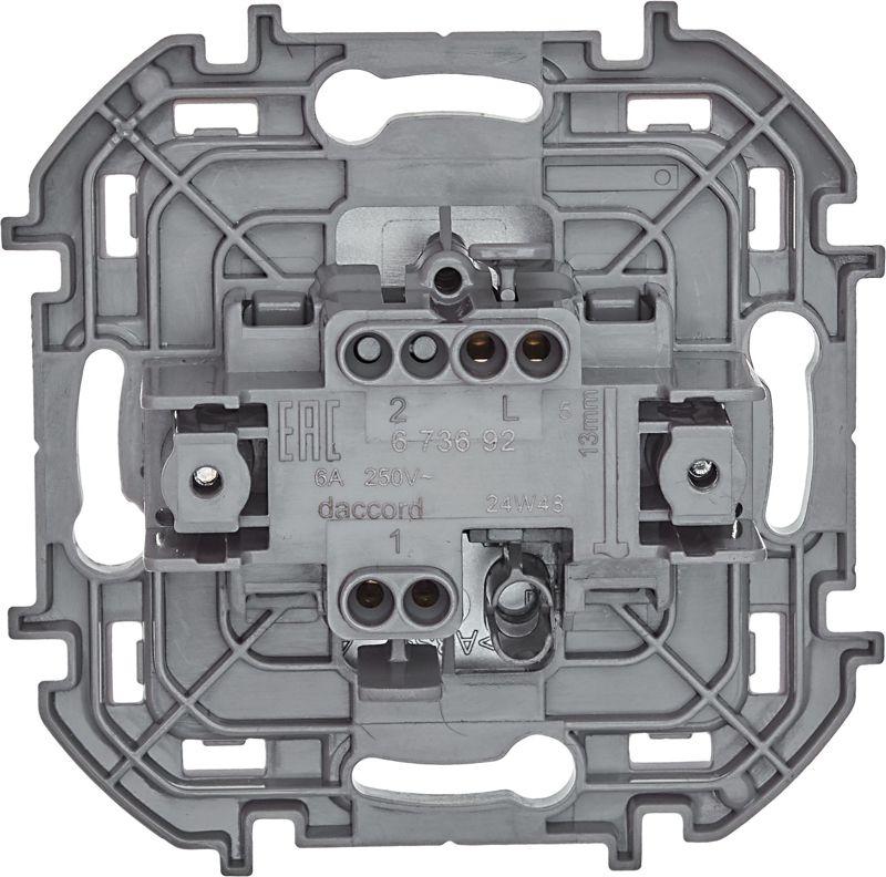 Выключатель кнопочный одноклавишный скрытого монтажа Inspiria, цвет "Алюминий", номинальный ток 6А, напряжение ~250В, безвинтовые зажимы. Устанавливается в жилых и общественных помещениях для управления импульсными реле, звонками и т.п.