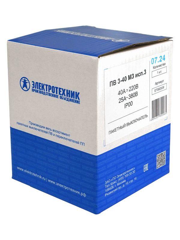 Выключатель пакетный ПВ3-40А (исп. 3) Электротехник ET002509