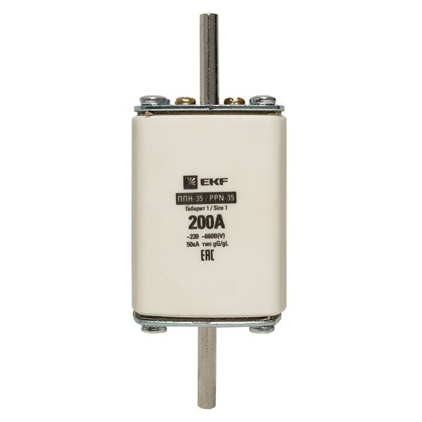 Плавкая вставка ППН-35 250/200А габарит 1 EKF. Предохранители плавкие ППН EKF, укомплектованные плавкими вставками типа gG/gL, предназначаются для защиты кабельных линий и промышленных электроустановок от токов перегрузки и короткого замыкания. Предохранители применяются в электрических сетях переменного тока частотой 50 Гц с напряжением до 660В. Применяются для крепления в распределительных и вводно-распределительных устройствах. Предохранители плавкие ППН могут устанавливаться в основание с держателем, а также в специально предназначенные рубильники. В комплект поставки предохранителей плавких ППН основание с держателем не входит и приобретается отдельно.