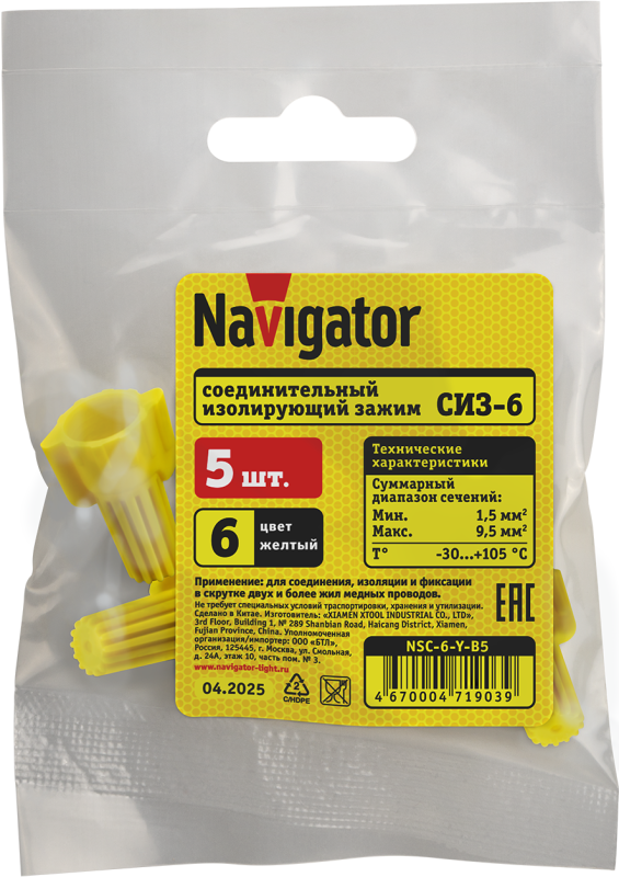 Зажим соединительный изолирующий 71 903 NSC-6-Y-B5 желт. (уп.5шт) Navigator 71903
